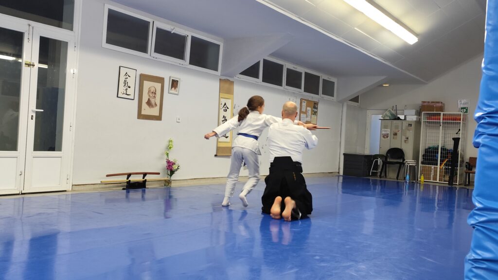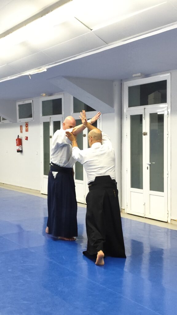 A continuación practicamos un poco, aplicando los fundamentos que acabábamos de escuchar: hara, kimusubi, unificación… Intentando entender a Uke y aceptándolo.
